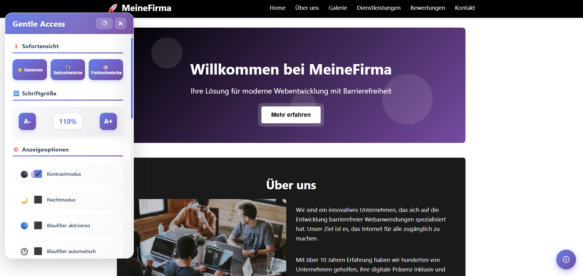 Gentle Access is an innovative web accessibility tool designed to make websites barrier-free and inclusive for all users. This React-based widget can be integrated into any website, providing comprehensive accessibility features that help users with visual impairments, color blindness, and other accessibility needs to navigate and interact with web content comfortably.