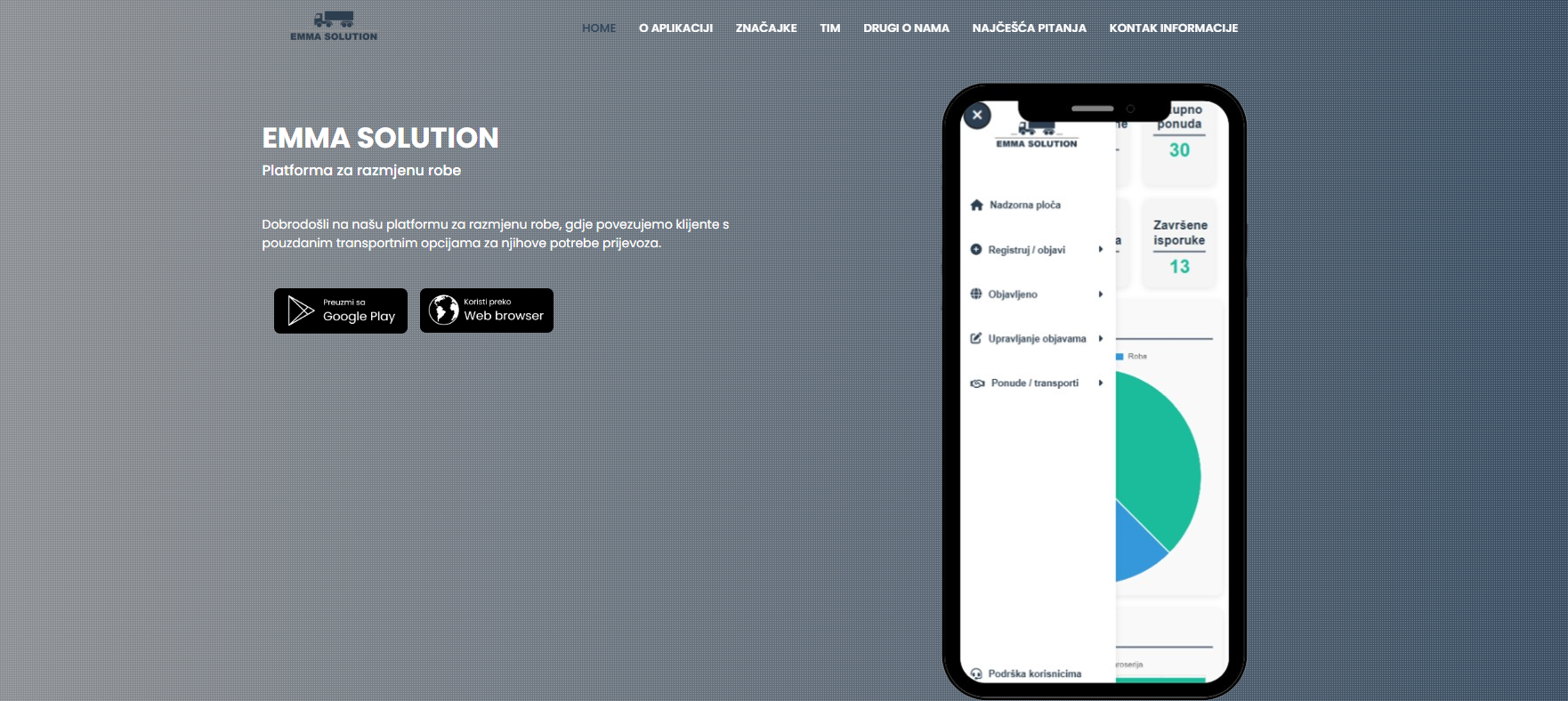 EMMA SOLUTION is a responsive landing page designed to highlight the features of our advanced freight exchange platform. The platform connects clients with reliable transport services, offering a streamlined solution for logistics and vehicle management.